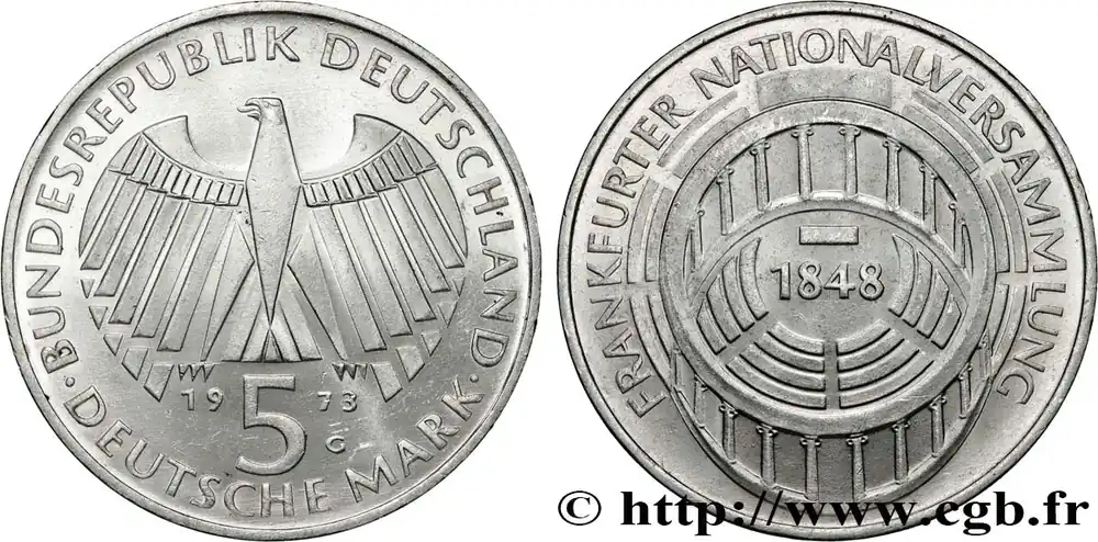 ALLEMAGNE 5 Mark Proof Parlement de Francfort 1973 Karlsruhe fwo_819653 Monde Dernière Chance