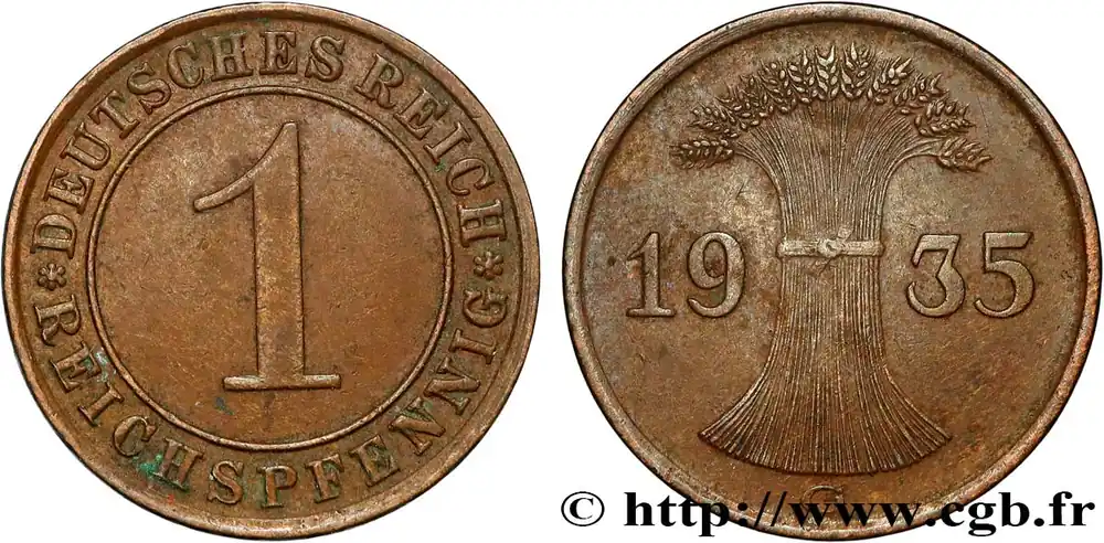 ALLEMAGNE 1 Reichspfennig gerbe de blé 1935 Karlsruhe fwo_834012 Monde Solde