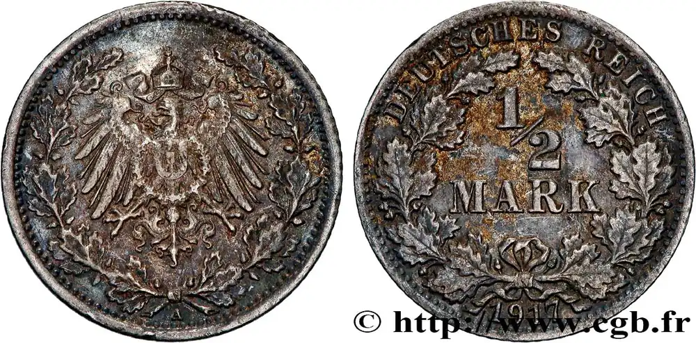 ALLEMAGNE 1/2 Mark Empire aigle impérial 1917 Berlin fwo_838710 Monde Certifié