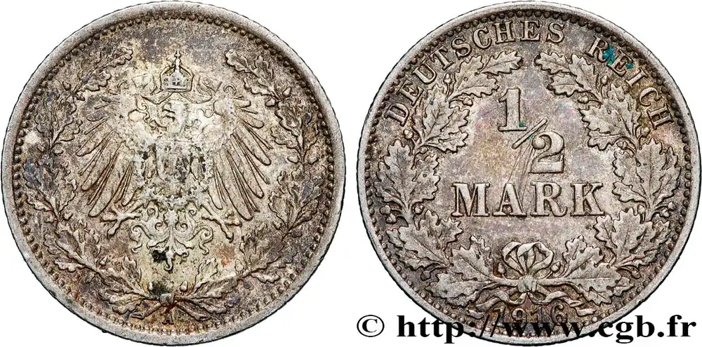 ALLEMAGNE 1/2 Mark Empire aigle impérial 1916 Berlin fwo_838765 Monde Édition Limitée