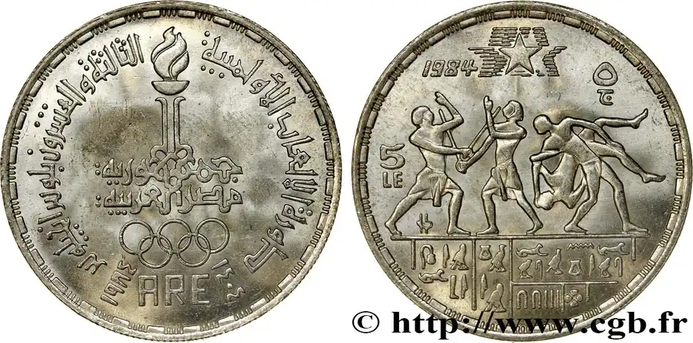 Offre Exclusive ÉGYPTE 5 Pounds (Livres) Jeux Olympiques de Los Angeles AH 1404 1984 fwo_849691 Monde