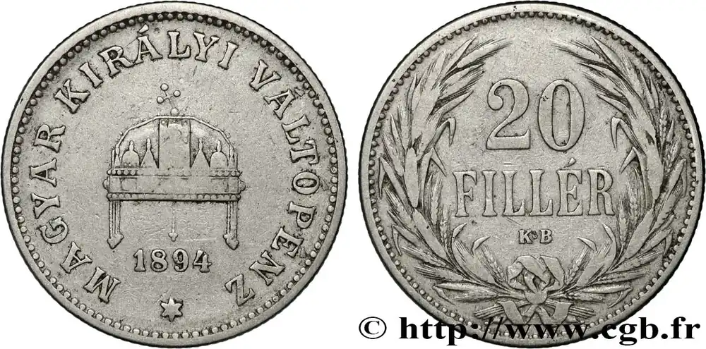 Nouvel Arrivage HONGRIE 20 Filler couronne 1894 Kremnitz – KB fwo_852225 Monde