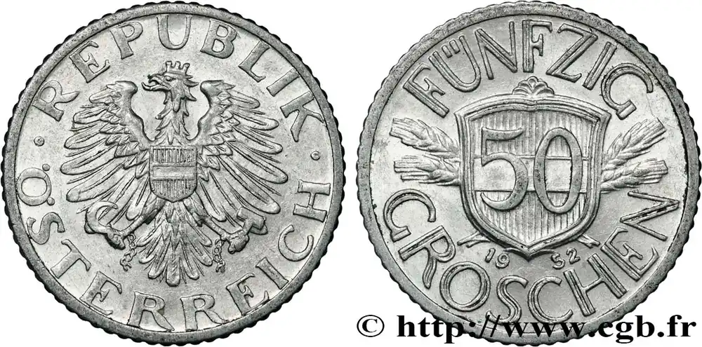Nouvelle Collection AUTRICHE 50 Groschen aigle 1952 fwo_852228 Monde
