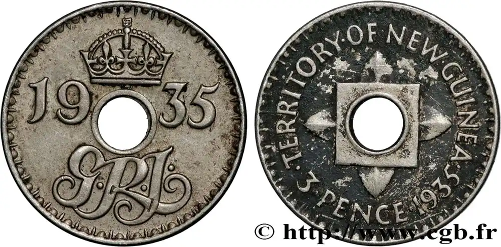 Nouvel Arrivage PAPOUASIE NOUVELLE GUINÉE 3 Pence Georges V 1935 Melbourne fwo_852285 Monde