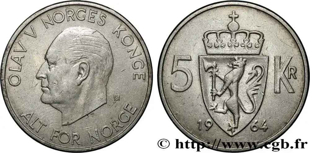 Artisanat NORVÈGE 5 Kroner roi Olaf V 1964 Konsberg fwo_852425 Monde
