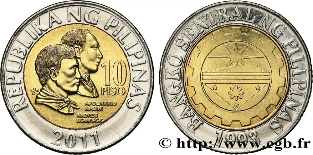 Commander Maintenant PHILIPPINES 10 Pisos Apolinario Marini et Andres Bonifacio / sceau de la Banque Centrale des Philippines 2011 fwo_845375 Monde