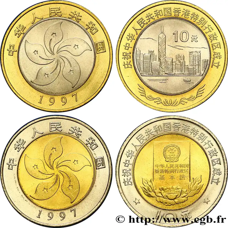 CHINE Lot de 2 monnaies de 10 Yuan Retour de Hong Kong à la Chine 1997 Shenyang fwo_845801 Monde Promotion