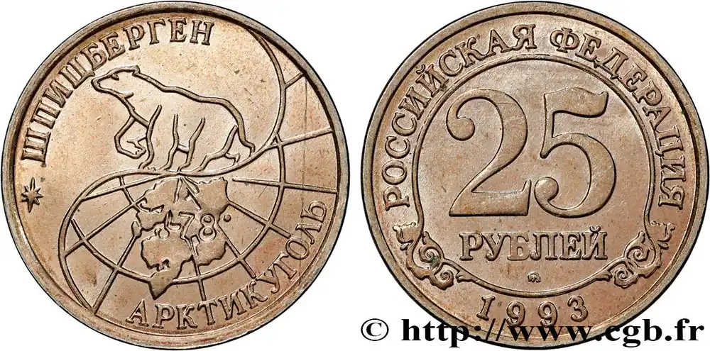 Réduction SPITZBERG (Norvège) 25 Roubles compagnie minière russe Artikugol 1993 Moscou fwo_776995 Monde