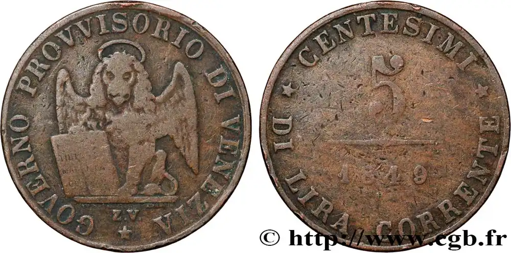 Promotion ITALIE – RÉPUBLIQUE DE VENISE 5 Centesimi Gouvernement provisoire de Venise 1849 Venise fwo_854612 Monde
