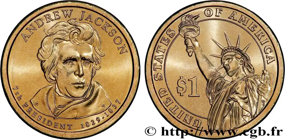 Authentique ÉTATS-UNIS D’AMÉRIQUE 1 Dollar Présidentiel Andrew Jackson 2008 Philadelphie fwo_819041 Monde
