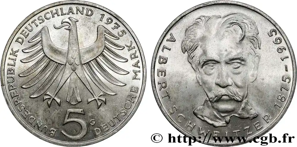 ALLEMAGNE 5 Mark Proof Albert Schweitzer 1975 Karlsruhe – G fwo_819616 Monde Retour Gratuit