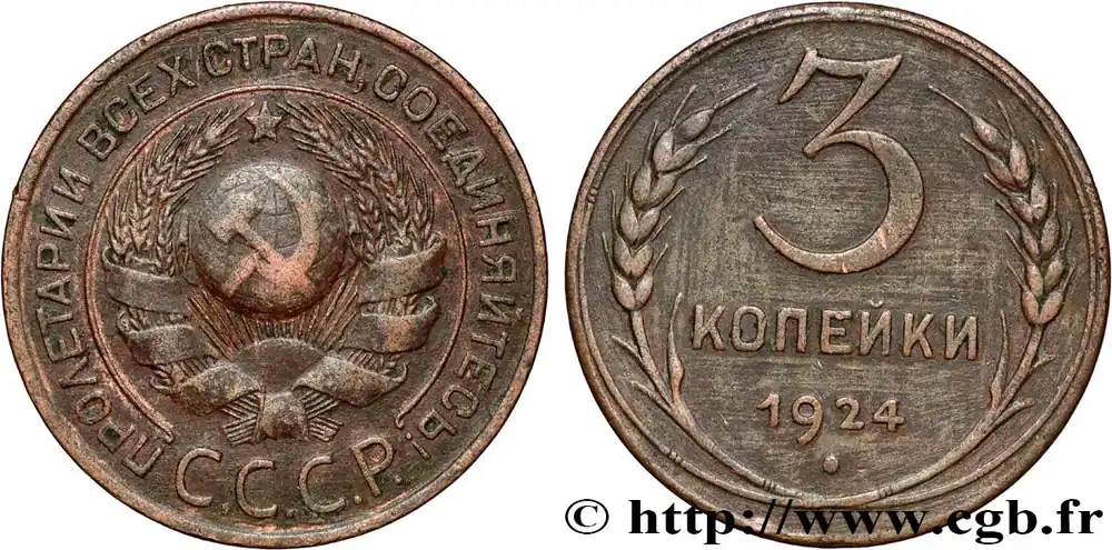 Usine Directe RUSSIE – URSS 3 Kopecks emblème de l’URSS 1924 fwo_841536 Monde