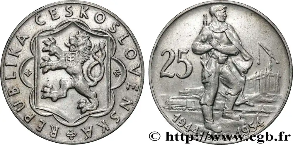 TCHÉCOSLOVAQUIE 25 Korun 10e anniversaire du soulèvement slovaque 1954 fwo_843087 Monde Offre Limitée