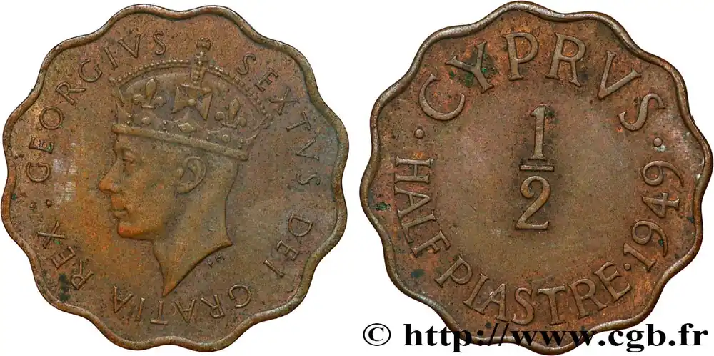 Super Prix CHYPRE 1/2 Piastre roi Georges VI couronné 1949 fwo_846412 Monde