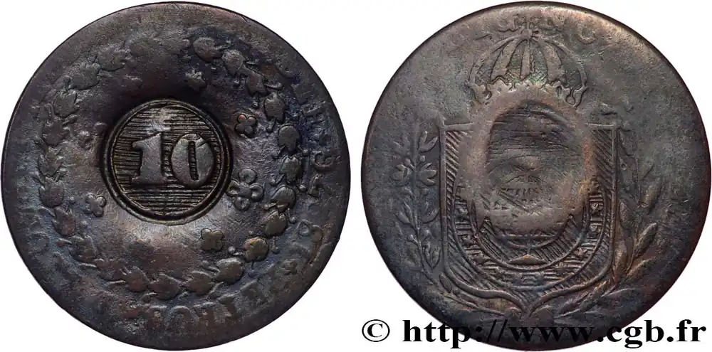 BRÉSIL – EMPIRE DU BRÉSIL – PIERRE II 10 Réis contremarqué sur une 20 Réis de 1827 (1835) fwo_822004 Monde Nouvel Arrivage