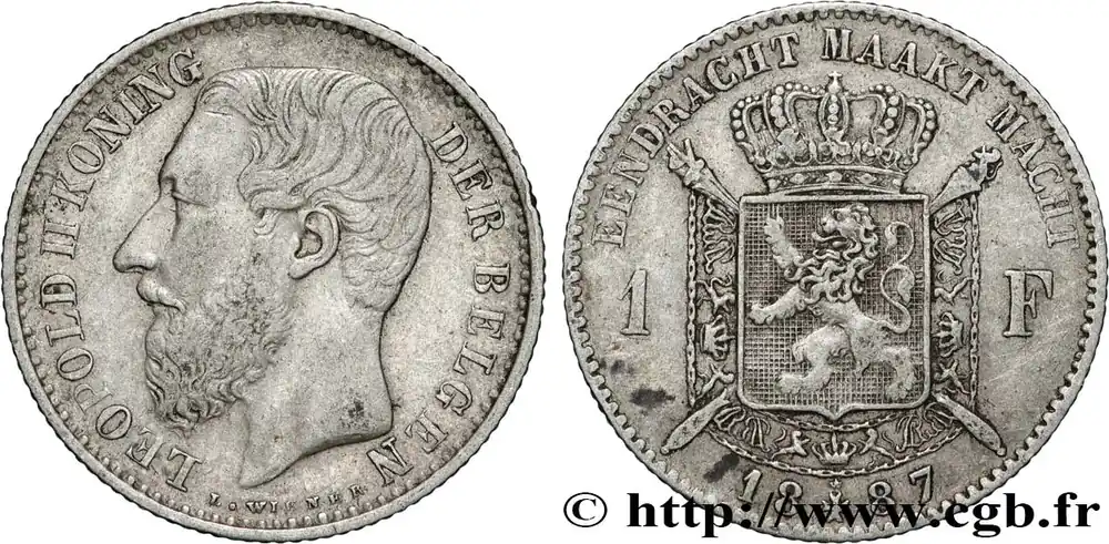 BELGIQUE 1 Franc Léopold II légende flamande signature L.WIENER 1887 fwo_839345 Monde Acheter Direct