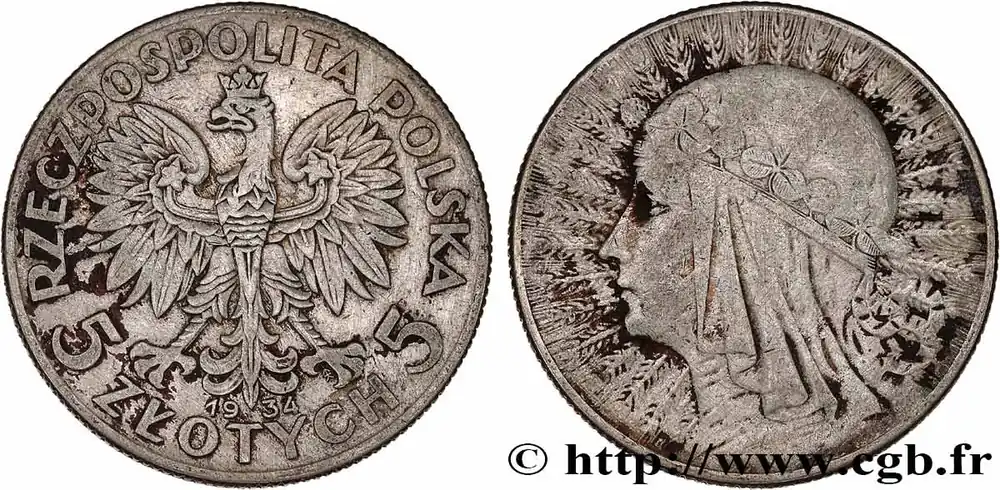 Dernier Modèle POLOGNE 5 Zlotych Reine Jadwiga 1934 Varsovie fwo_777257 Monde