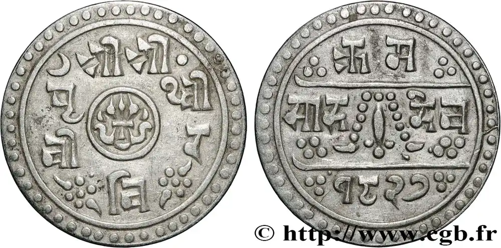 Certifié NÉPAL 1/2 Mohar au nom du Shah Prithvi Bir Bikram VS1827 1905 fwo_861609 Monde
