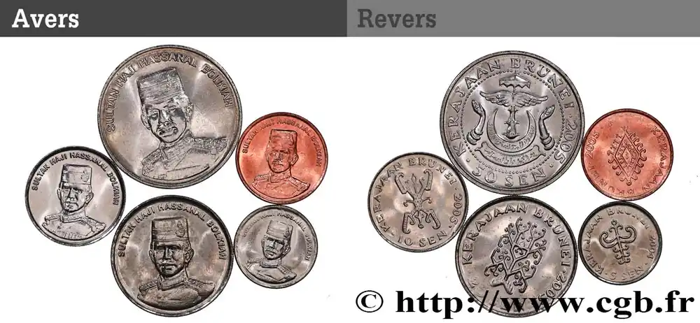 Affaire À Saisir BRUNEI Lot de 5 monnaies 1, 5, 10, 20 et 50 Sen Hassanal Bolkiah I 2004-2005 fwo_724833 Monde