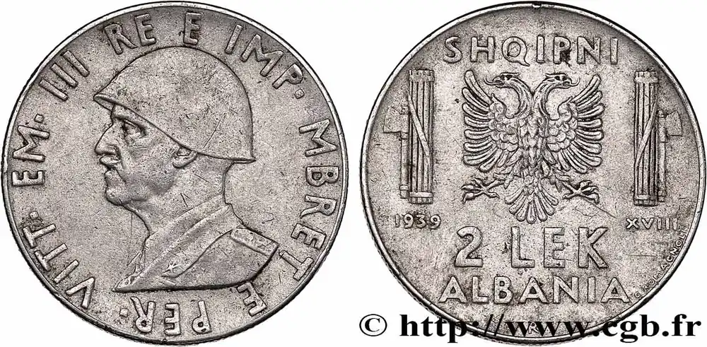 ALBANIE 2 Lek Victor-Emmanuel III d’Italie 1939 Rome fwo_854527 Monde Offre Spéciale