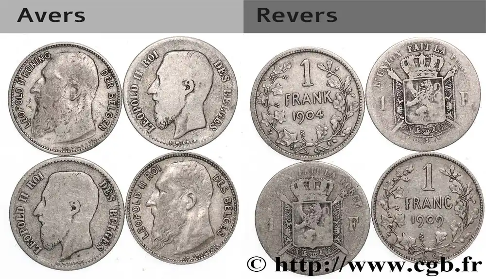 Réduction BELGIQUE Lot 4 x 1 Frank (Franc) Léopold II n.d. fwo_835775 Monde