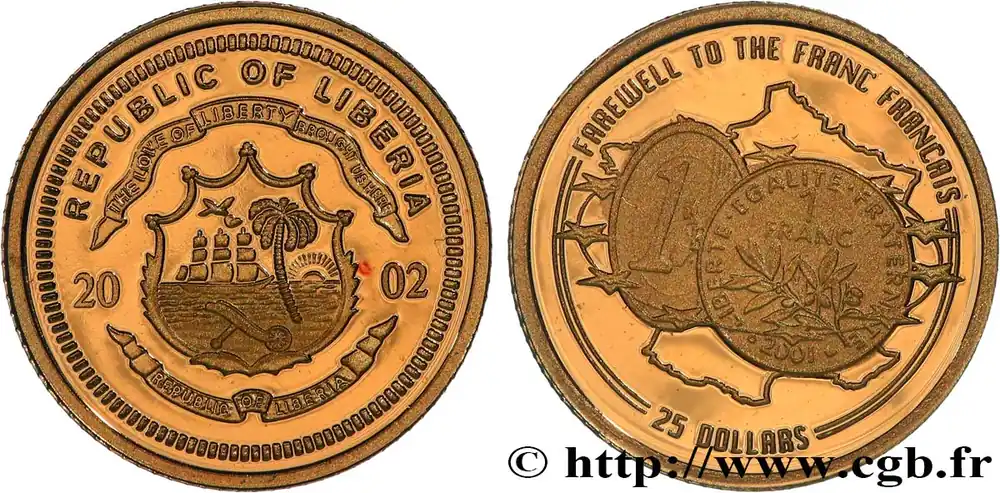 Tendance LIBERIA 25 Dollars Proof fin du franc 2002 fwo_829508 Monde