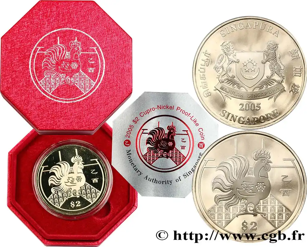 Super Prix SINGAPOUR 2 Dollars Proof année du coq 2005 fwo_858048 Monde