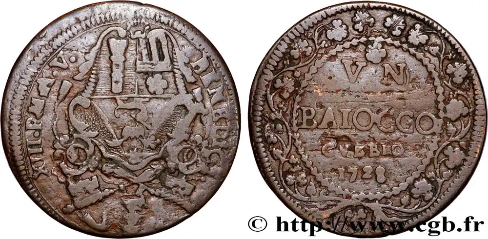 VATICAN ET ÉTATS PONTIFICAUX 1 Baiocco Benoît XIII an V 1728 Gubbio fwo_864490 Monde Achetez Aujourd’hui