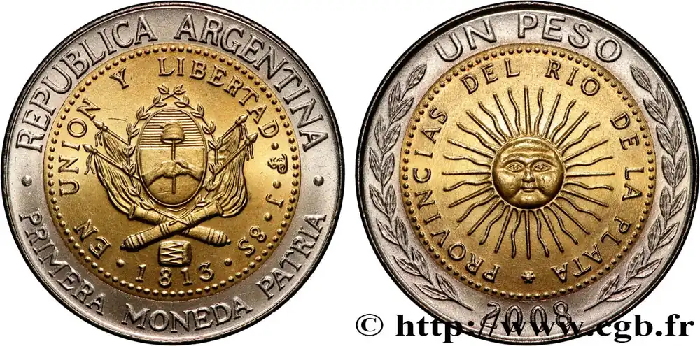 ARGENTINE 1 Peso emblème / soleil frappe médaille 2008 fwo_837547 Monde Marque
