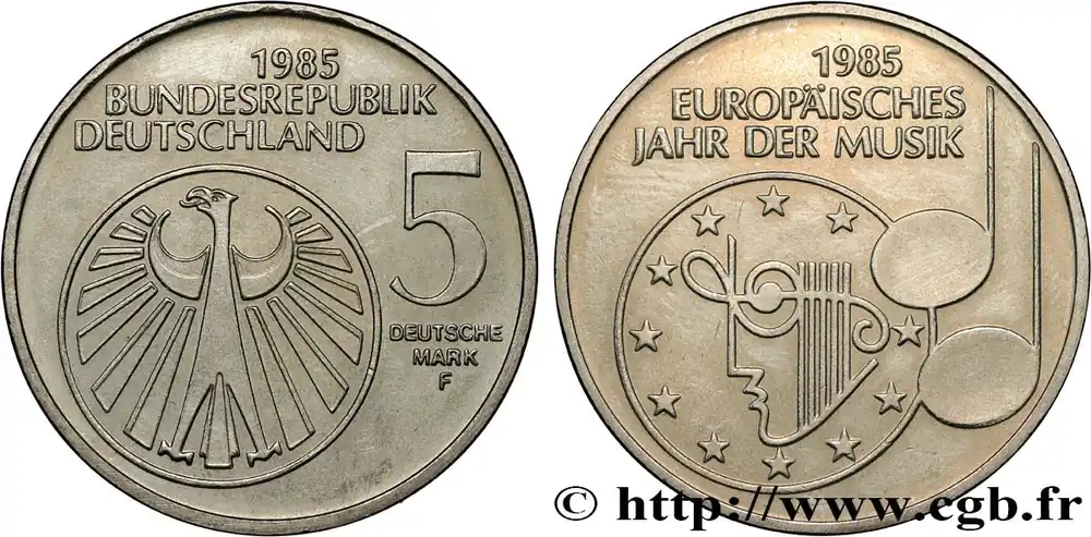 Haute Qualité ALLEMAGNE 5 Mark Année européenne de la musique 1985 Stuttgart – F fwo_807940 Monde