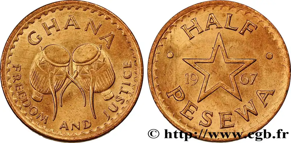GHANA 1/2 Pesewa tambours / étoile 1967 fwo_843898 Monde Affaire À Saisir
