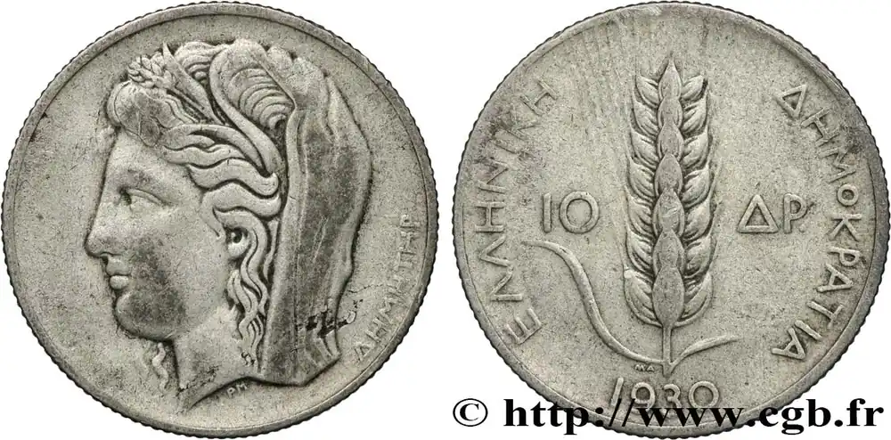 GRÈCE 10 Drachmes épi / Déesse Démeter 1930 Londres fwo_853317 Monde Paiement Sécurisé