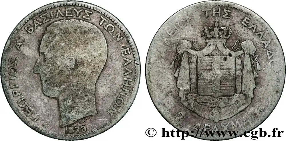 GRÈCE 2 Drachmes Georges Ier 1873 Paris fwo_858141 Monde Meilleur Choix