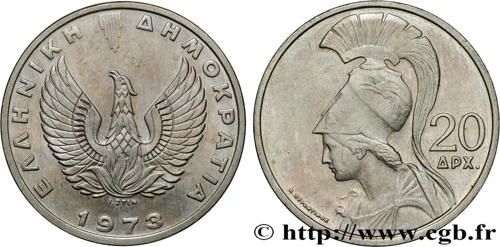 GRÈCE 20 Drachmes Athéna 1973 fwo_858153 Monde Promotion