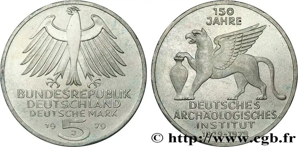 Premium ALLEMAGNE 5 Mark 150e anniversaire de l’Institut Archéologique Allemand Proof 1979 Hambourg fwo_823321 Monde