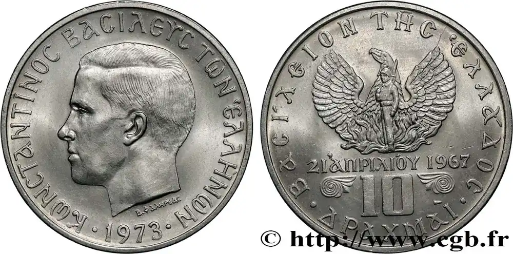 Seulement Aujourd’hui GRÈCE 10 Drachmes Constantin II 1973 fwo_809840 Monde