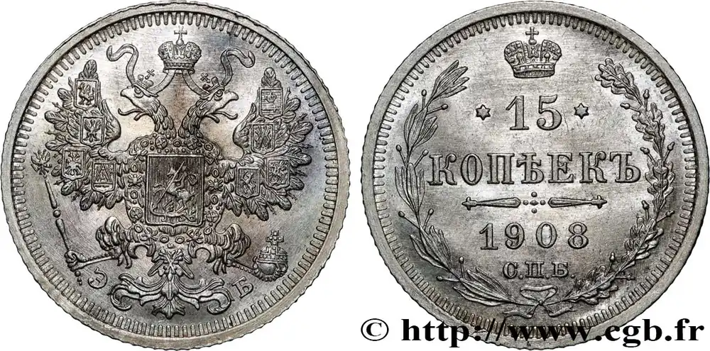 RUSSIE 15 Kopecks 1908 Saint-Petersbourg fwo_860845 Monde Seulement Aujourd’hui