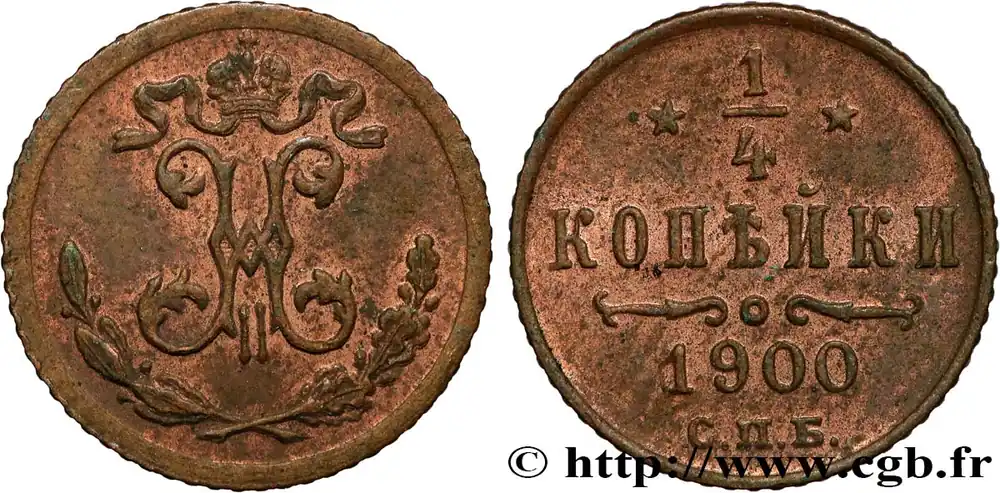 RUSSIE 1 Polushka (1/4 Kopeck) monogramme Nicolas II 1900 Saint-Petersbourg fwo_860916 Monde Super Prix