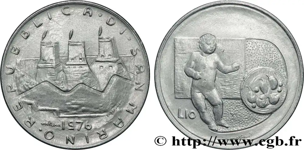 SAINT-MARIN 10 Lire 3 tours / enfant et fruits 1976 Rome fwo_864649 Monde Exclusif