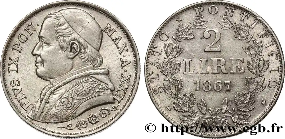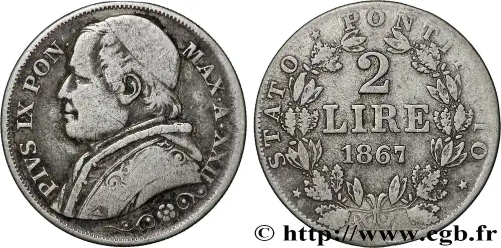 VATICAN ET ÉTATS PONTIFICAUX 2 Lire Pie IX an XXII 1867 Rome fwo_856517 Monde Remise