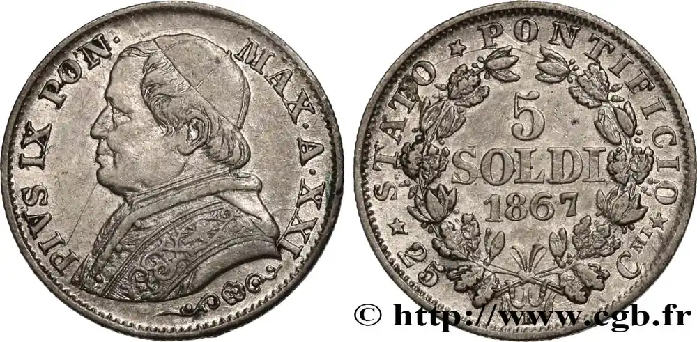 VATICAN ET ÉTATS PONTIFICAUX 5 Soldi Pie IX an XXI 1867 Rome fwo_603981 Monde Top Vente