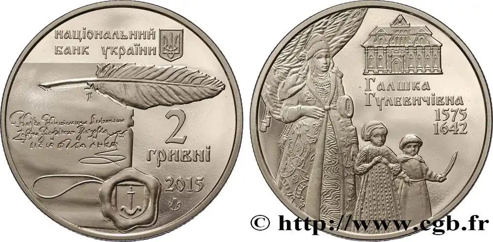 UKRAINE 2 Hryvnias Elizabeth (Halshka) Vasilivna Hulevychivna 2015 fwo_846252 Monde Prix Choc
