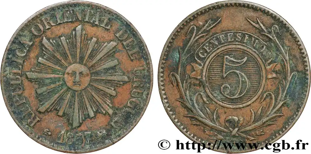 Top Vente URUGUAY 5 Centesimos Soleil 1857 Lyon – D fwo_846389 Monde