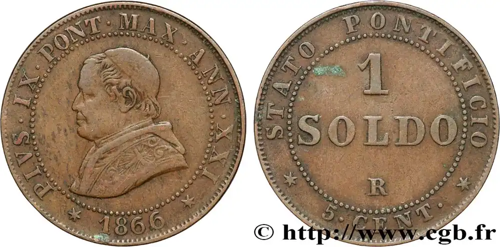 VATICAN ET ÉTATS PONTIFICAUX 1 Soldo (5 centesimi) Pie IX an XXI type petit buste 1866 Rome fwo_858751 Monde Meilleur Choix