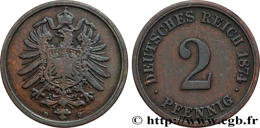 Vente Directe ALLEMAGNE 2 Pfennig aigle impérial 1874 Munich fwo_861007 Monde