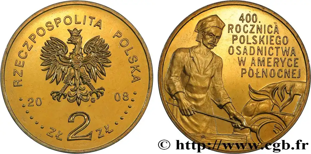 Dernier Modèle POLOGNE 2 Zlote aigle / 400e anniversaire des établissements polonais en Amérique, souffleur de verre 2008 Varsovie fwo_821337 Monde