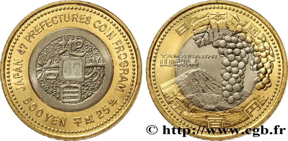 JAPON 500 Yen série des 47 préfectures : Yamanashi an 25 Heisei 2013 fwo_844997 Monde Vente Directe