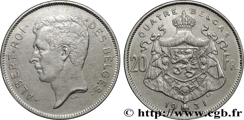 Livraison Mondiale BELGIQUE 20 Francs – 4 Belga Albert Ier légende Française position B 1931 fwo_869998 Monde