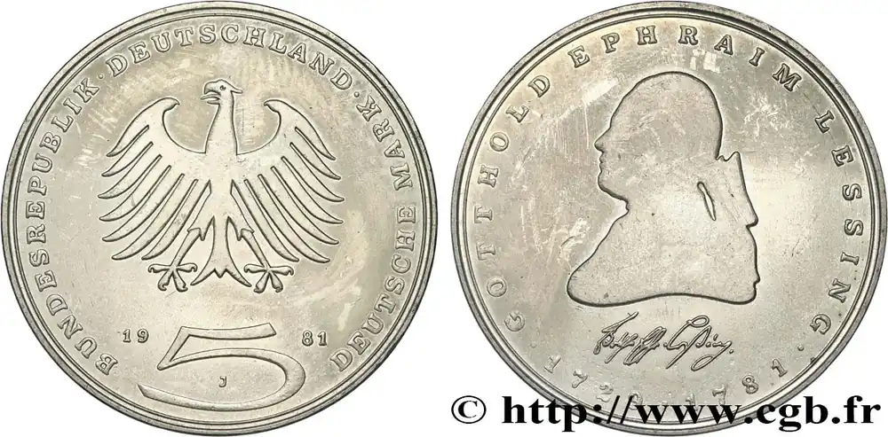 Offre Du Jour ALLEMAGNE 5 Mark aigle Gotthold Ephraim Lessing 1981 Hambourg – J fwo_823370 Monde