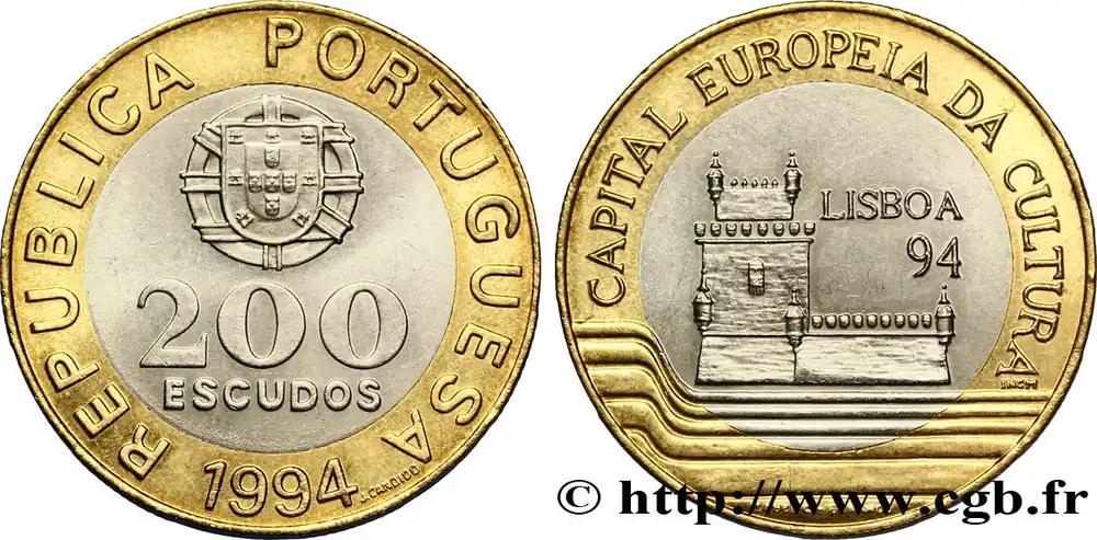 PORTUGAL 200 Escudos “Lisbonne, capitale culturelle de l’Europe” emblème / Tour de Belém 1994 fwo_842823 Monde Prix Choc